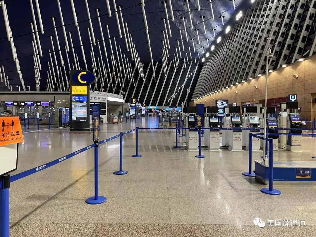 2022年1月4日来到广州白云国际机场。落地广州的那一刻我就发现情况不太对,与我来之前想象的不太一样。来之前在洛杉矶国际机场,除了口罩之外,没有感觉到什么异样,大家甚至都没有社交距离,依旧是人来人往,非常繁忙和热闹。但是来到白云机场就不一样了,感觉非常荒凉,整个机场里面好像只有我们这一个国际航班,地面蒙了一层灰土看来是很久没人打扫了。我们被安排在一个候机大厅,远处是一排办理登记手续的大白。