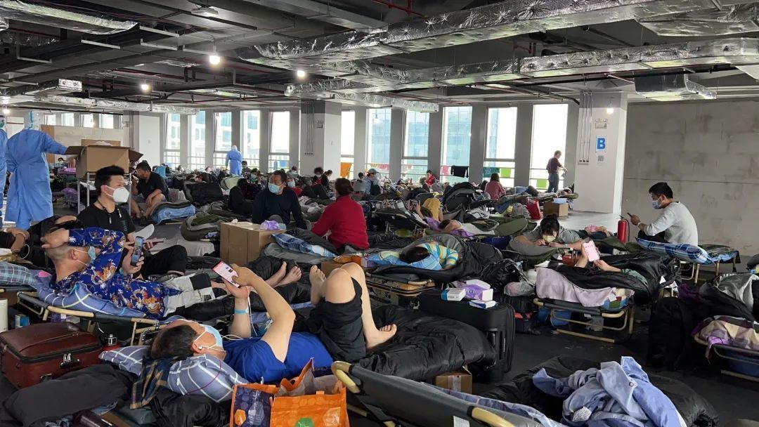 结果就下了车,当时是五点钟到的万体方舱,我就看到很多人在吵架。他们在这吵的一个内容说什么你们骗了,我们明明说是转医院怎么转到这个方舱里面。好像很多人是这样被骗过来的。然后他们就会说自己是有很多基础病的,这个根本没法在方舱里面待。反正「骗」这个词我当时也确实是听到了很多次。还有有一个比较老的老奶奶,相当于他直接很生气的说你们这样弄我会死的。