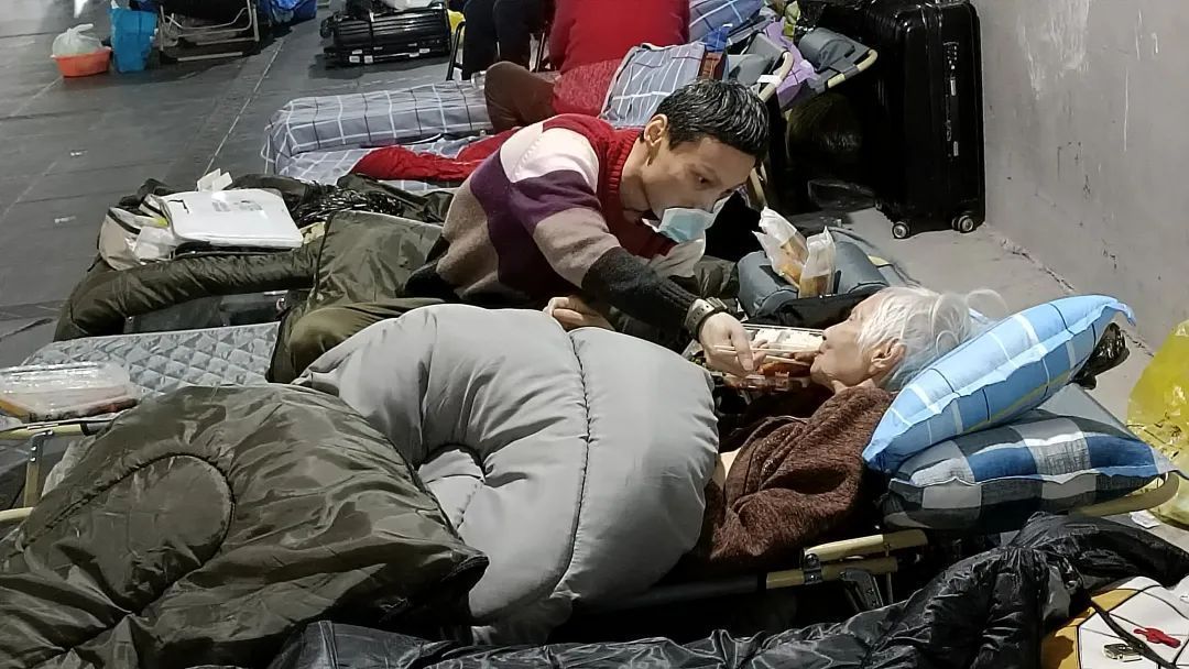 后来居然还真的在方舱住下来了。她没有自理能力,她儿子是一把屎一把尿帮她母亲去清理。第一天本来是想要抱她母亲上厕所,但方舱的厕所完全行不通。最后是儿子翻开被子,完全靠尿布、手帕、纸巾、各种毛巾去帮母亲做的清理。饭也是一口一口喂进去的,全部都是细致入微的打理。