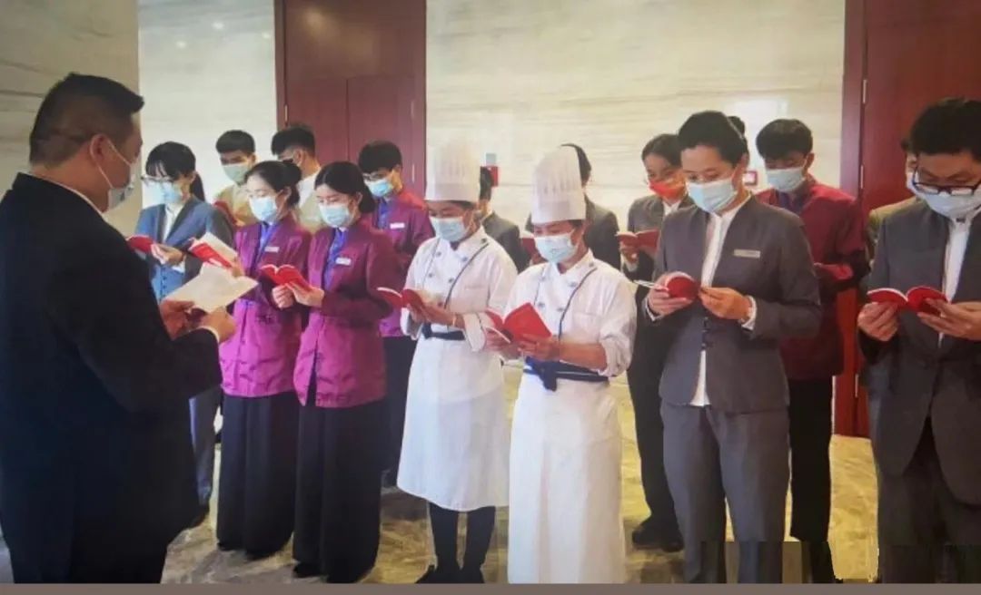 五象山庄的厨子和服务员们放下锅碗瓢盆,一起朗读口袋书。