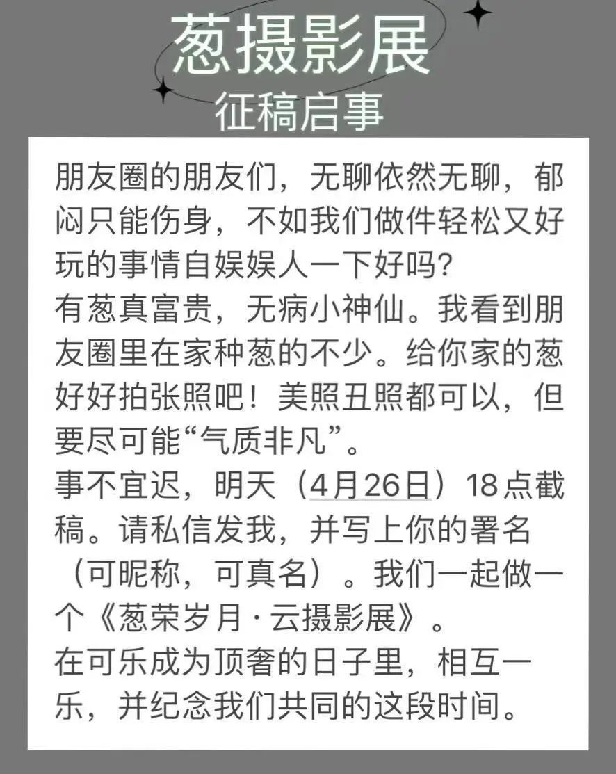 他们发来的葱照,大致可分为三类:特艺术的、特真实的,特不靠谱的。