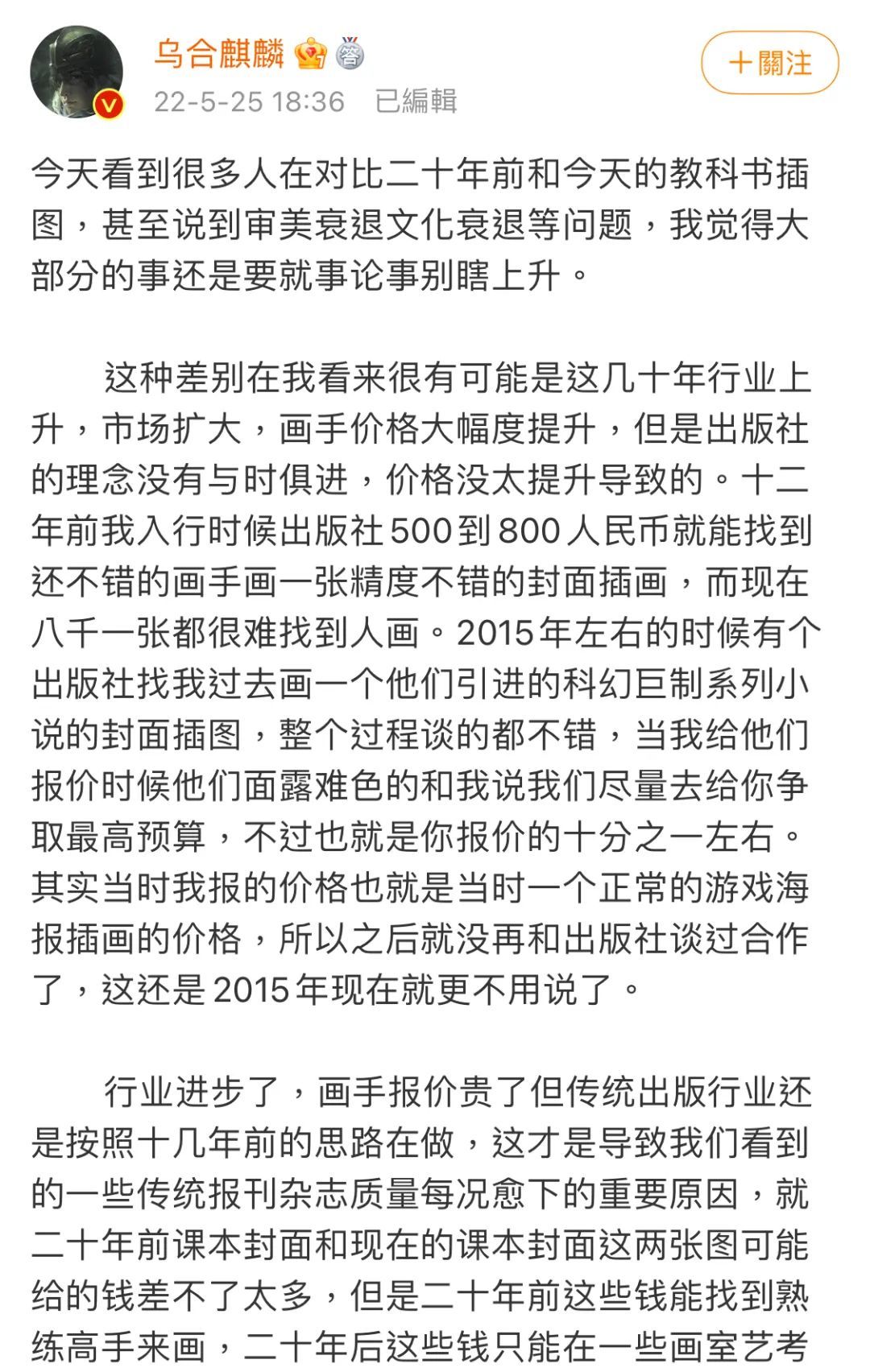 道理很简单——自从上次“抗疫画”的风波以后,他应该已经感到:他曾推波助澜的某种民间舆论狂热风潮,现在已经卷到自己脚边,开始危及他所从事的这个行业的正常运行了。所以他要“兔死狐悲”。