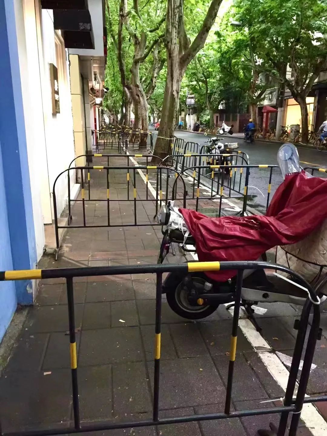 欢迎你到富民路走走,你会发现南京西路街道管辖的范围全部栏杆,对面静安寺街道管辖的范围全部共享单车,行人走在机动车道上,一条奇怪的路。欢迎跨栏高手!
