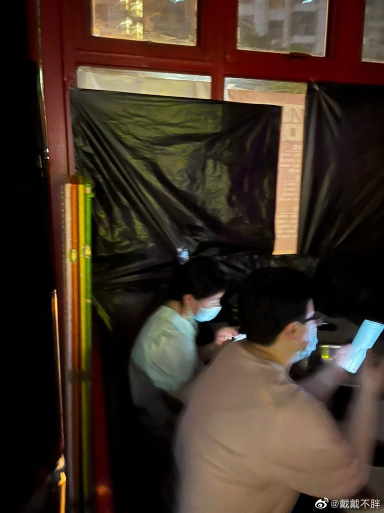近日,有关上海民众在餐厅熄灯用餐,偷偷堂食以躲避防疫巡查的照片在网络热传。其中一张照片前景中食客在黑暗中用餐,而画面中心则是毛玻璃外两个身着警察制服的身影,被网友评价为“压迫感十足”、“本月最佳摄影”。