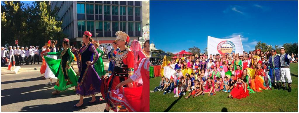 报告指出,“散居海外的华人社区组织及其精英经常被用作宣传中共新疆政策的渠道,并被统战官员积极培养,甚至有时还被‘收买’,成为统战组织的一部分。这些组织的一些高级成员还在中国的统战机构中担任重要职务,这使他们能够更有效地协调活动并促进党的议程。” 该报告以南澳新疆联合会为例,大篇幅的介绍了其组织运作,指该协会由汉族主导,多次扮演了“大外宣”的角色并和当地政客有大量往来。特别是在 2018 年澳大利亚国庆日庆祝游行中,尽管大量维吾尔侨民反对,他们依旧参加了游行庆祝,并获得了最佳服装奖,还和包括州长在内的大量当地官员合影。
