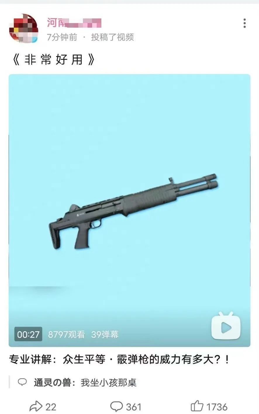 而某官方机构账号也在B站转发名为《霰弹枪的威力有多大》的视频,配文“非 常 好 用”,不知此言论跟拜登刚刚签署的控枪法案到底有无关系: