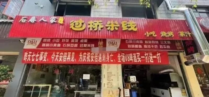 有的商家觉得印条幅成本较高,选择推出“安倍开席套餐”: