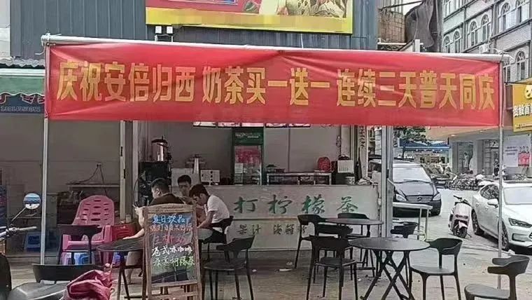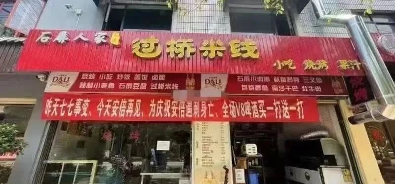 我看了以后就觉得特别搞笑,你说奶茶店、化妆品店、过桥米线,听说还有夜店。跟国际新闻真的是最远的存在了,居然也能“咸与维新”来凑一下安倍遇刺的狂欢热闹。丝毫不把咱外交部的相关表态当回事儿——这时候,也不见他们讲“祖国的态度,就是我的态度”了。