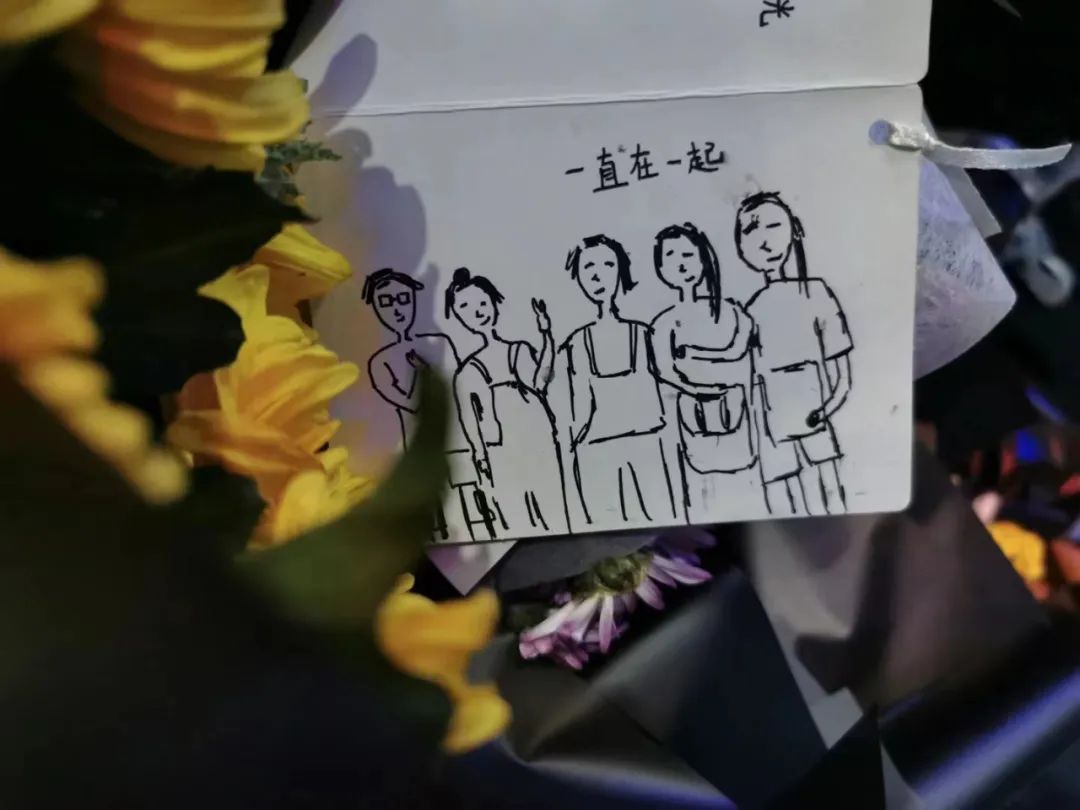 离开时,怕浪费,他把包子分给了一早赶来献花的市民。还剩一袋包子和几瓶酸奶,就摆在花海中间。