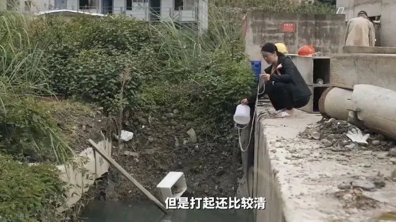 △陈艳春在水洼里取水|图源:凤凰网资讯