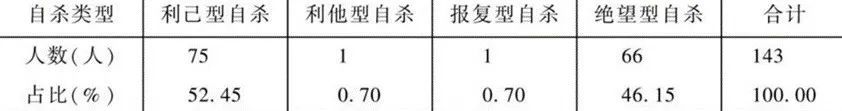 图为刘燕舞《农民自杀研究》分散型农业社会的农民自杀类型,其中近半为「绝望型自杀」
