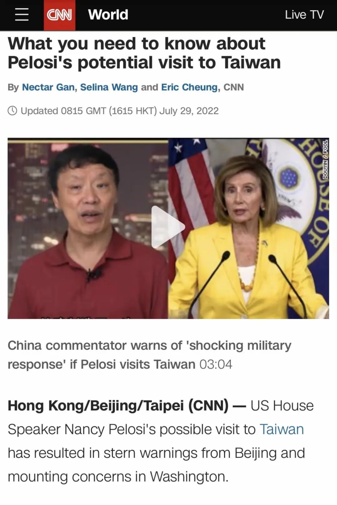 也就是说,如果我们真有把握硬钢美帝的话,早就把台湾问题解决了,哪还用等佩洛西来。