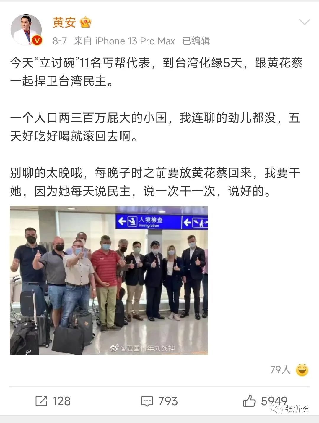 不要以为黄安是不惜得罪台湾,舍命爱国。他自己其实很安全。曾经有传言说他已经放弃台湾籍,加入了大陆籍,有人还担心,他是否还能回到台湾。