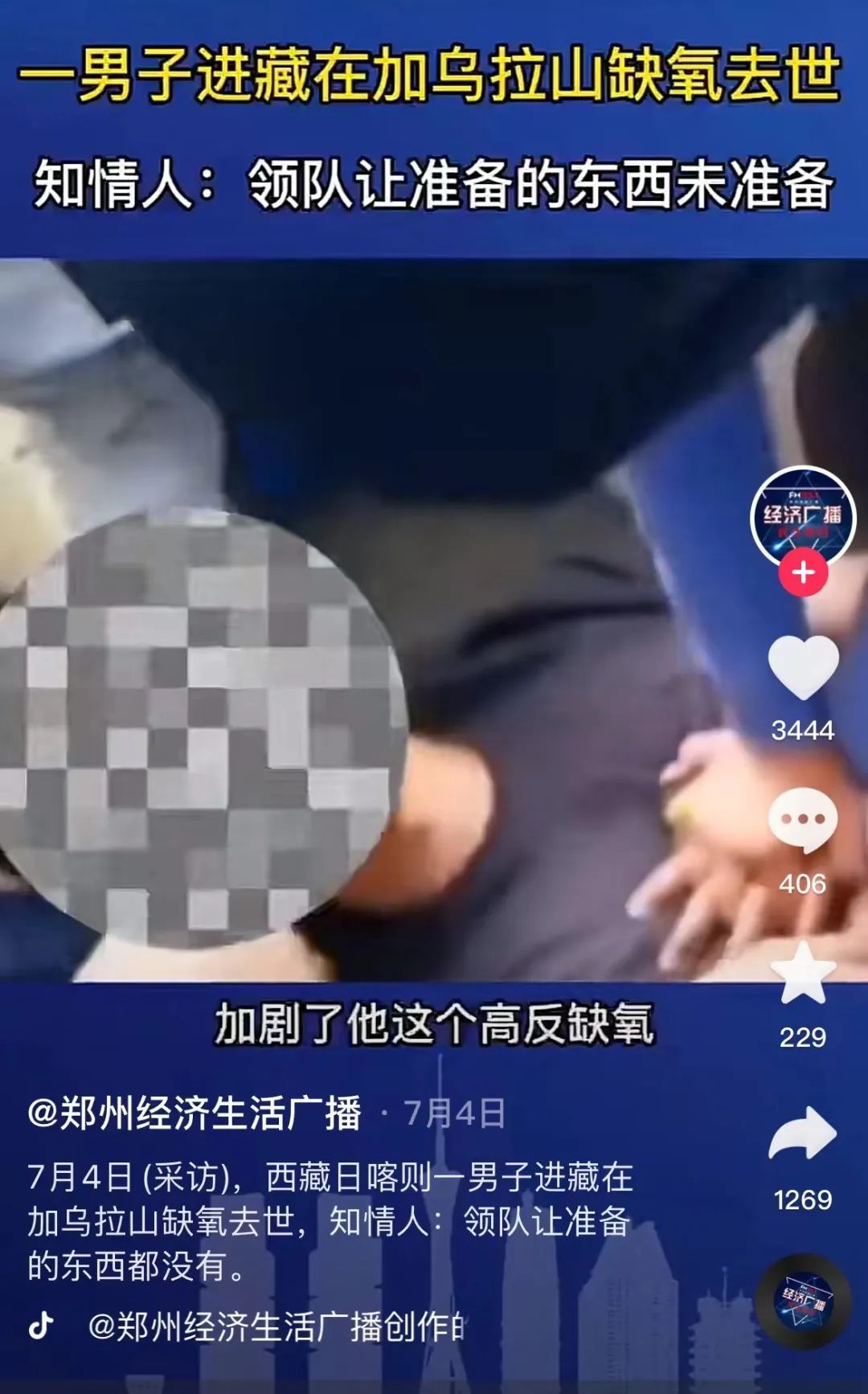 再回到文章开头的例子,有用户发视频说一名男子进藏后因缺氧死亡,视频里有抢救的画面,说话的人自称是领队,审核人员不可能事先判断出这是一条不实信息。总不能要求人家提供死者的死亡证明再允许发布吧?
