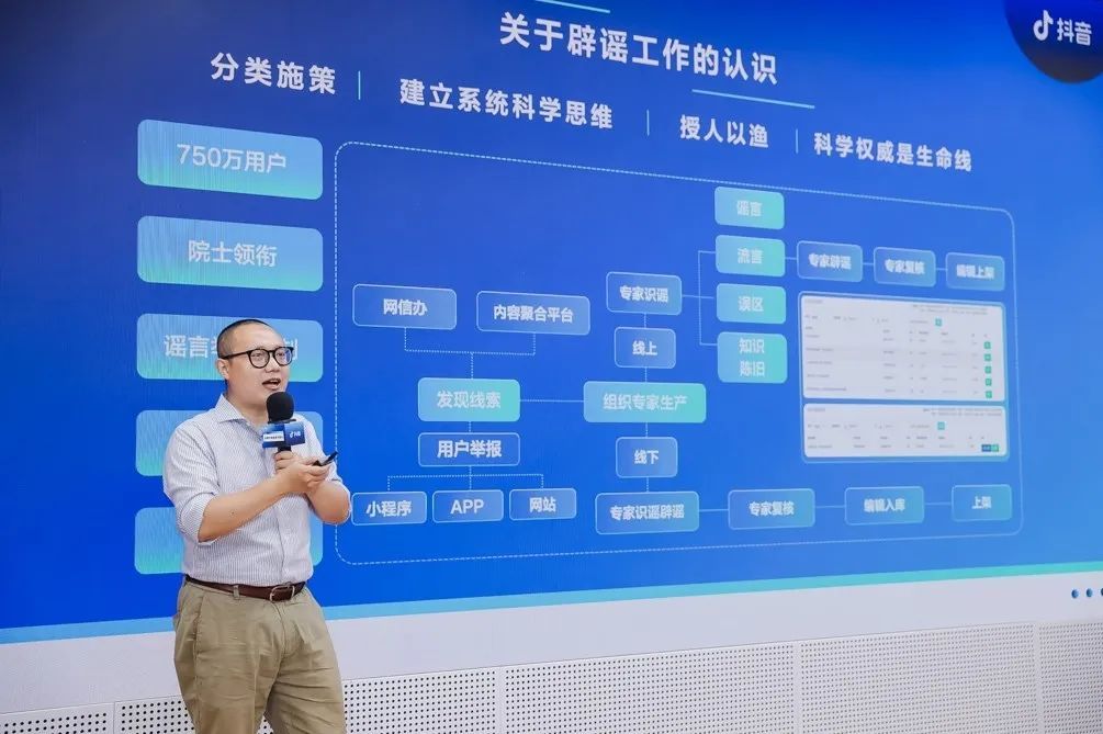 比如8月16日抖音举办的“治理不实信息开放日”上,科普中国辟谣平台运营负责人徐来就介绍了他们组织专家团队协助平台治理科学谣言的工作。这样的做法比起平台自己去培训审核人员当然要高效得多,也权威得多。
