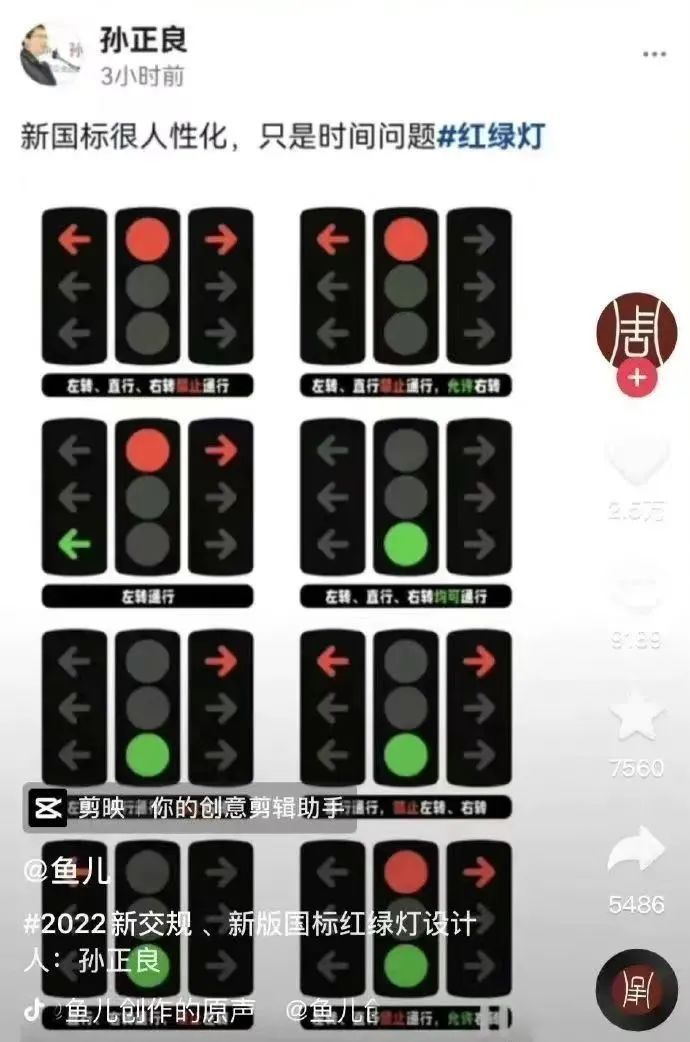 而意犹未尽的吐槽者们将此事进一步散播,可能是因为孙老师在直播中“新版红绿灯”的表述容易引起误会,传着传着,这个已经颁布很久的红绿灯标准之一,就被误传成了“2022年新版红绿灯统一标准”了。