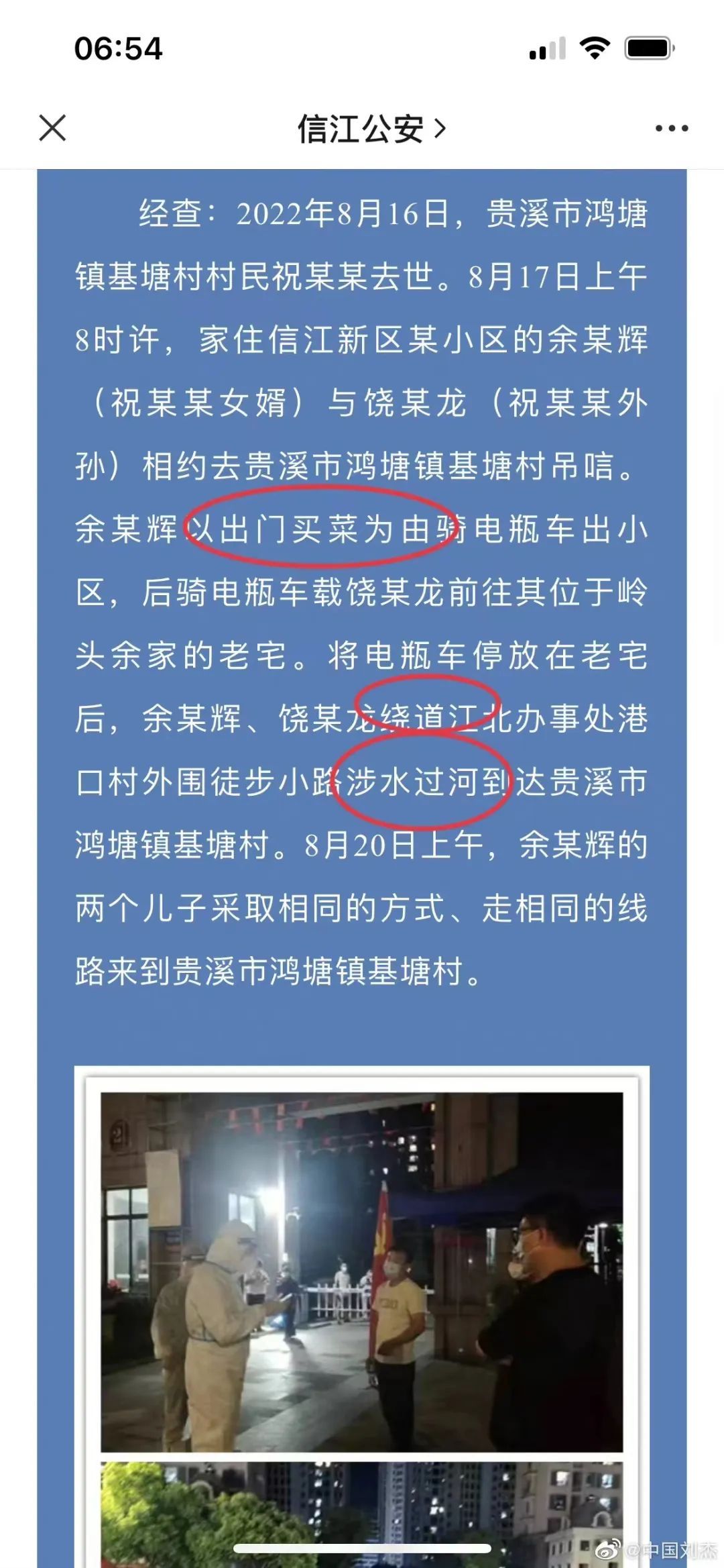 根据警方通报:2022年8月16日,贵溪市鸿塘镇一名村民去世;第二天上午,去世村民的女婿余某辉带上老人的外孙,一起去吊唁。