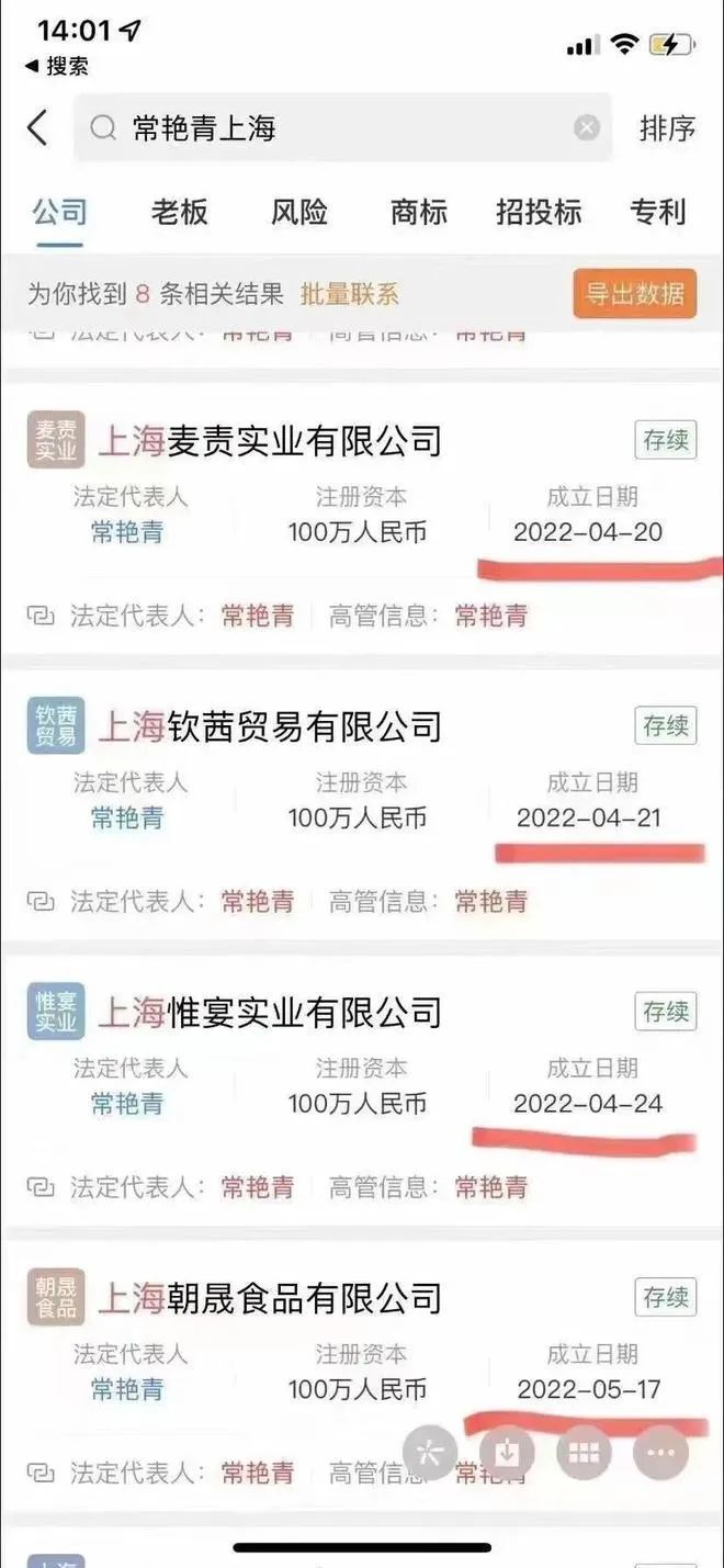 当初在魔都,阿里京东要进行“自杀式配送”,死活进不去,结果有许多“保供单位”,给市民送去的是山寨粉丝和粮油,腐烂变质的食品,还有“奶头肉”、死猪肉。这些保供的,最短的才注册了几天时间。跟成都的这位杨梅一样,上海著名的常女士,在疫情期间一口气就成立了8家公司搞保供了,难怪市民吐槽:她的公司比菜还新鲜,她的业务发展速度比新冠还快!