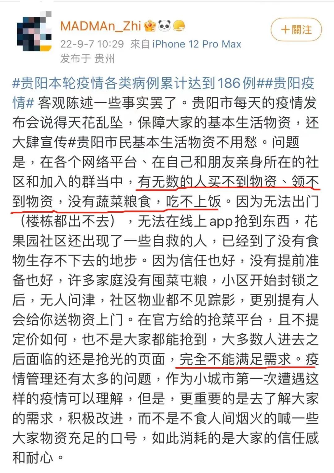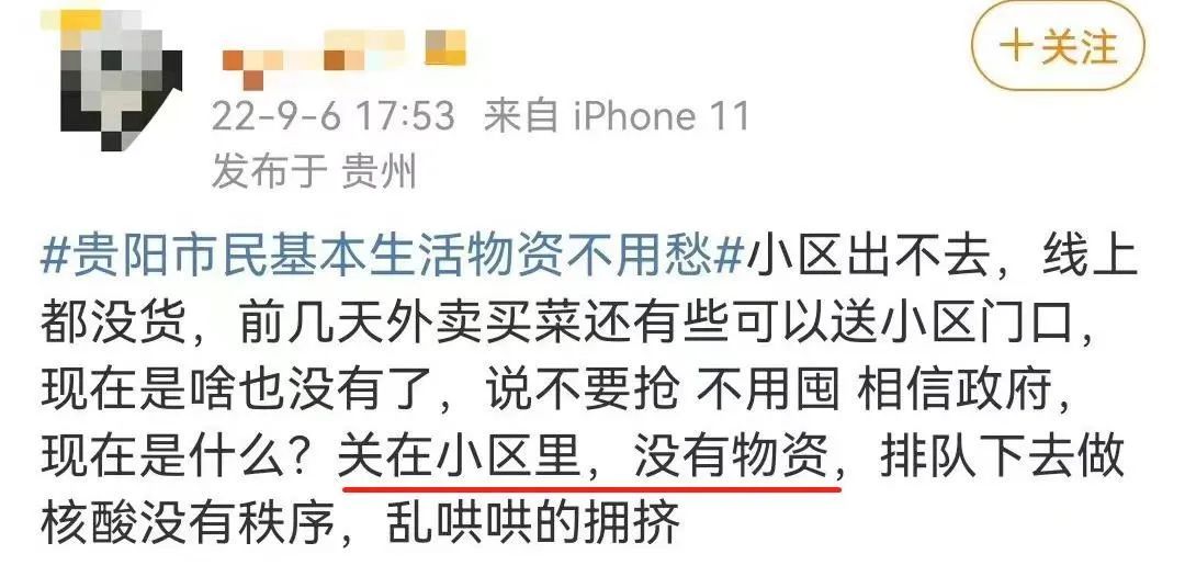 一位贵阳博主表示,贵阳疫情的真实情况跟你们想的不一样,很多人根本买不到吃的。