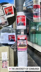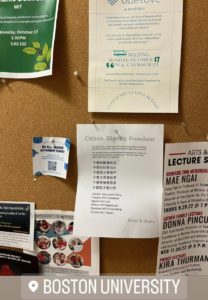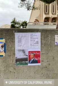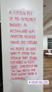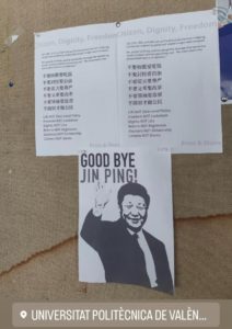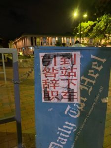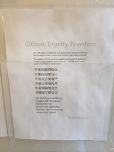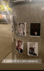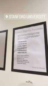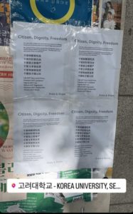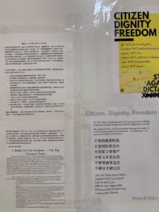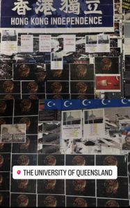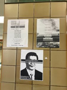 在这之后,世界各地的中国留学生为了支持这位勇士,自发发起了一项运动,他们将这位勇士打出的标语,打印并张贴到学校中,然后拍照上传网络。一位参与这一运动的网友写下: