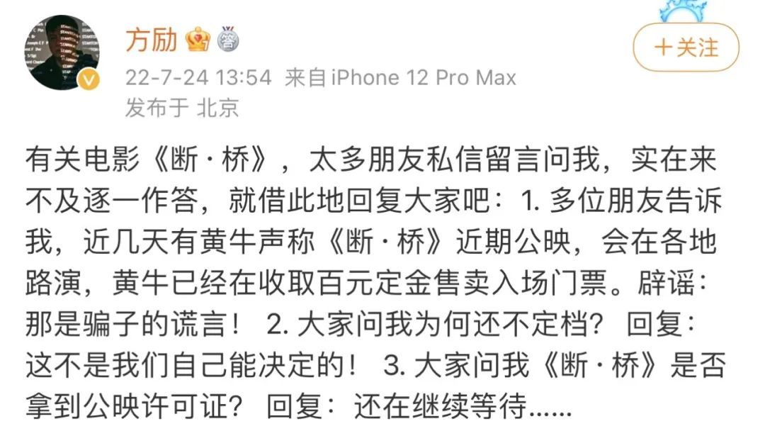 8月13日上映的《断·桥》,7月24日还在等待公映许可证;上个月,国庆档多部大片提前一周才官宣定档。