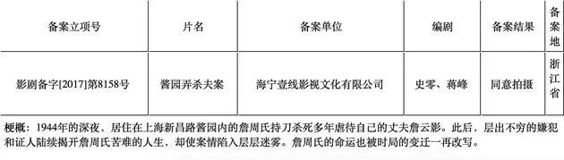 从内容上来看,这部剧《The Murder》就是2016年曾被公布的陈可辛执导电影《酱园弄杀夫案》。2018年,《酱园弄杀夫案》重新立项,更新“备案单位”,由原来的“引力影视投资有限公司”变为“海宁壹线影视文化有限公司”,当时媒体报道,陈可辛也将不再执导该片。