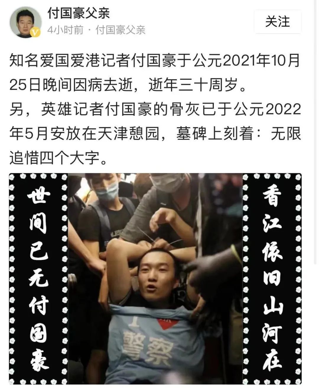 付国豪去世了,年仅30岁。