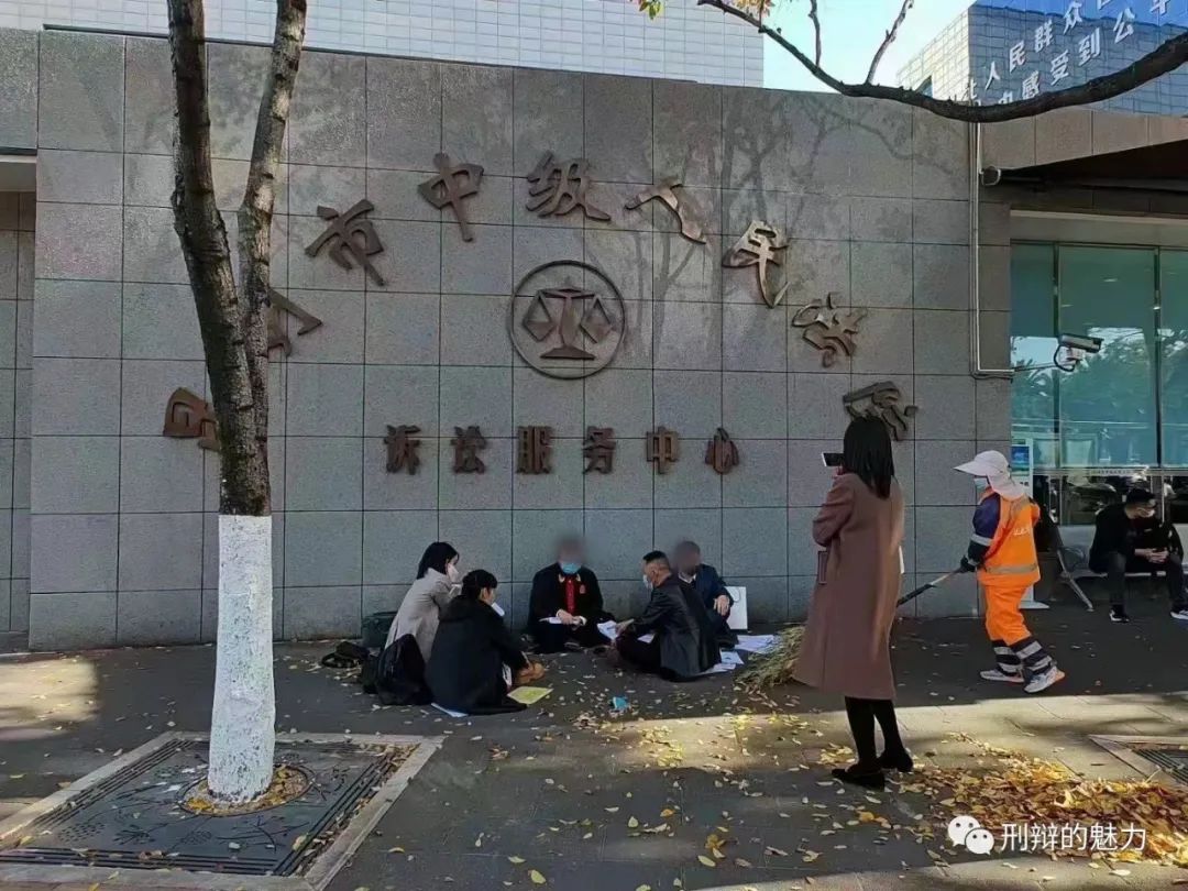 网传,由于昆明市中院疫情防控政策突然调整,代理律师无法进入法庭,才产生了图片中的这一幕。据说,当日的很多庭审直接取消,这场“街审”得以进行,还要归功于该案遇到了一位负责的法官。