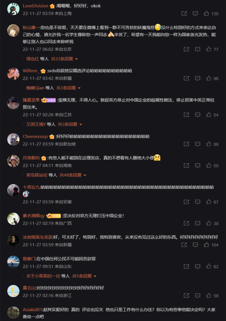 同时,也有网友发现,赵立坚的个人微博尚未开启“精选评论”,也暂未对网民的评论进行清理,这让赵立坚微博评论区成为了一个新的反对言论集结地。