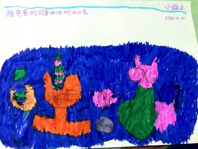 女儿豌豆为程渊和他的同事们画的画。图:受访者提供