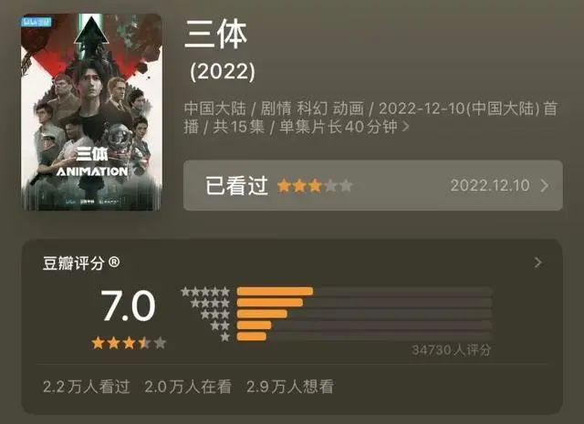 事实上,即将到来的2023年,可以说是个“三体年”,不仅这部艺画开天制作的动画版《三体》,由腾讯制作的国产剧版和网飞制作的美产剧版《三体》也都将上线。自从出版之后就就一直维持热度的《三体》小说预计肯定会再次引发热烈讨论。
