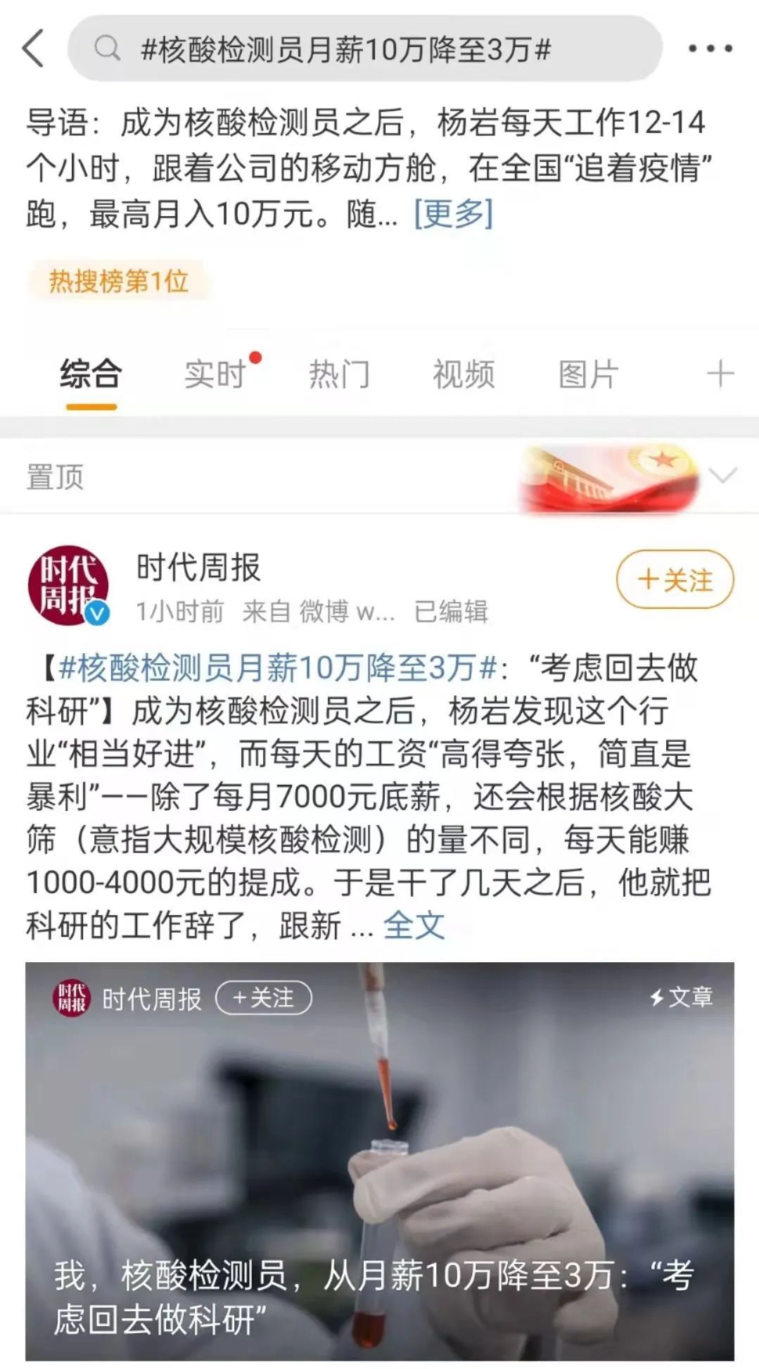 一个普通的核酸检测员月入10万,只不过是一个小小的切片,折射出核酸检测的巨大代价。