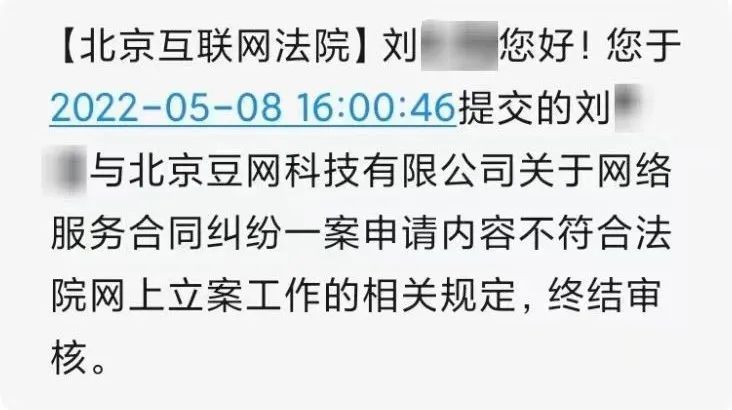 ▲立案申请被“终结审核”的短信
