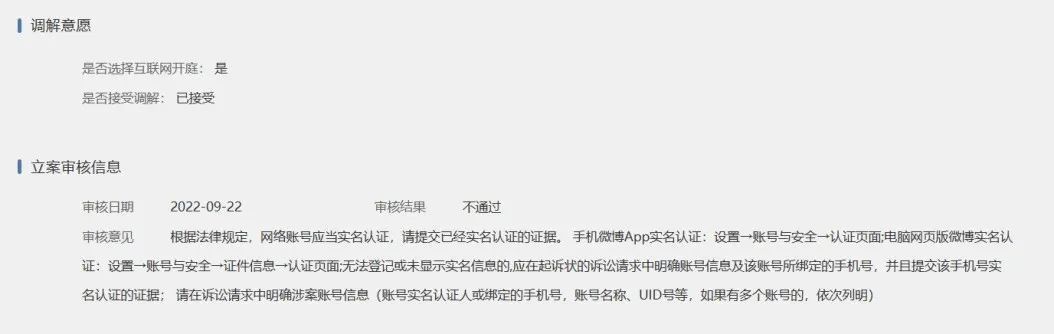于是小董补充了微博账号中经实名认证的“个人信息”页面,第二次提交了立案申请。