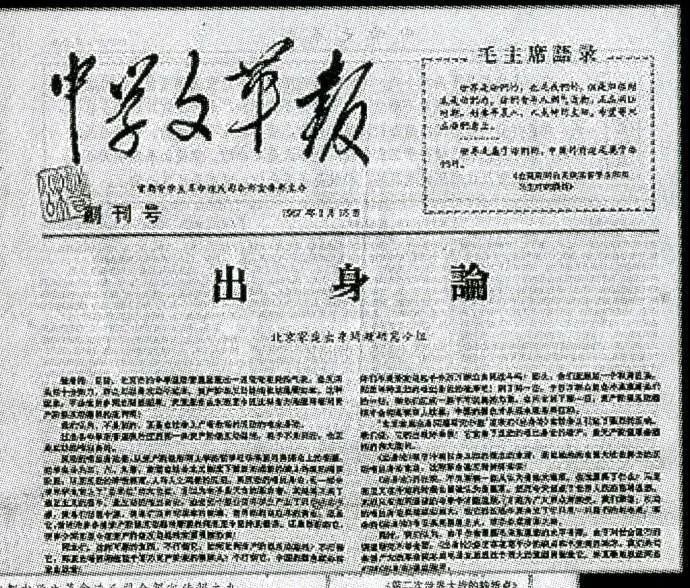 他以“家庭出身问题研究小组”为笔名,写了很多文章,最著名的就是1967年1月18日《中学文革报》第1期刊载的《出身论》。