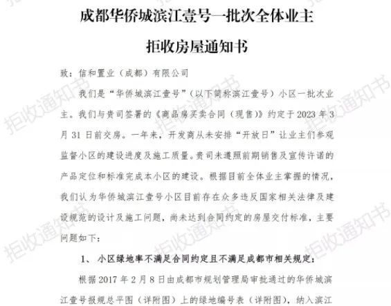 华侨城滨江壹号(即御龙山三四期)业主的核心观点是: