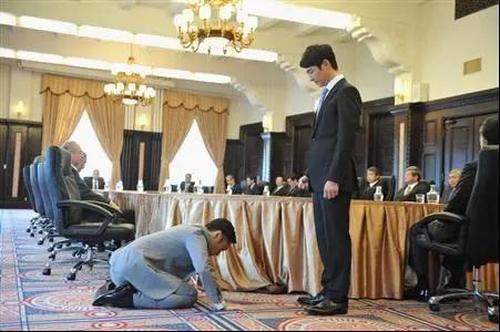 这让我想起了大学时看的日剧《半泽直树》,有一段主人公的恶上司给跪下他谢罪的剧情。