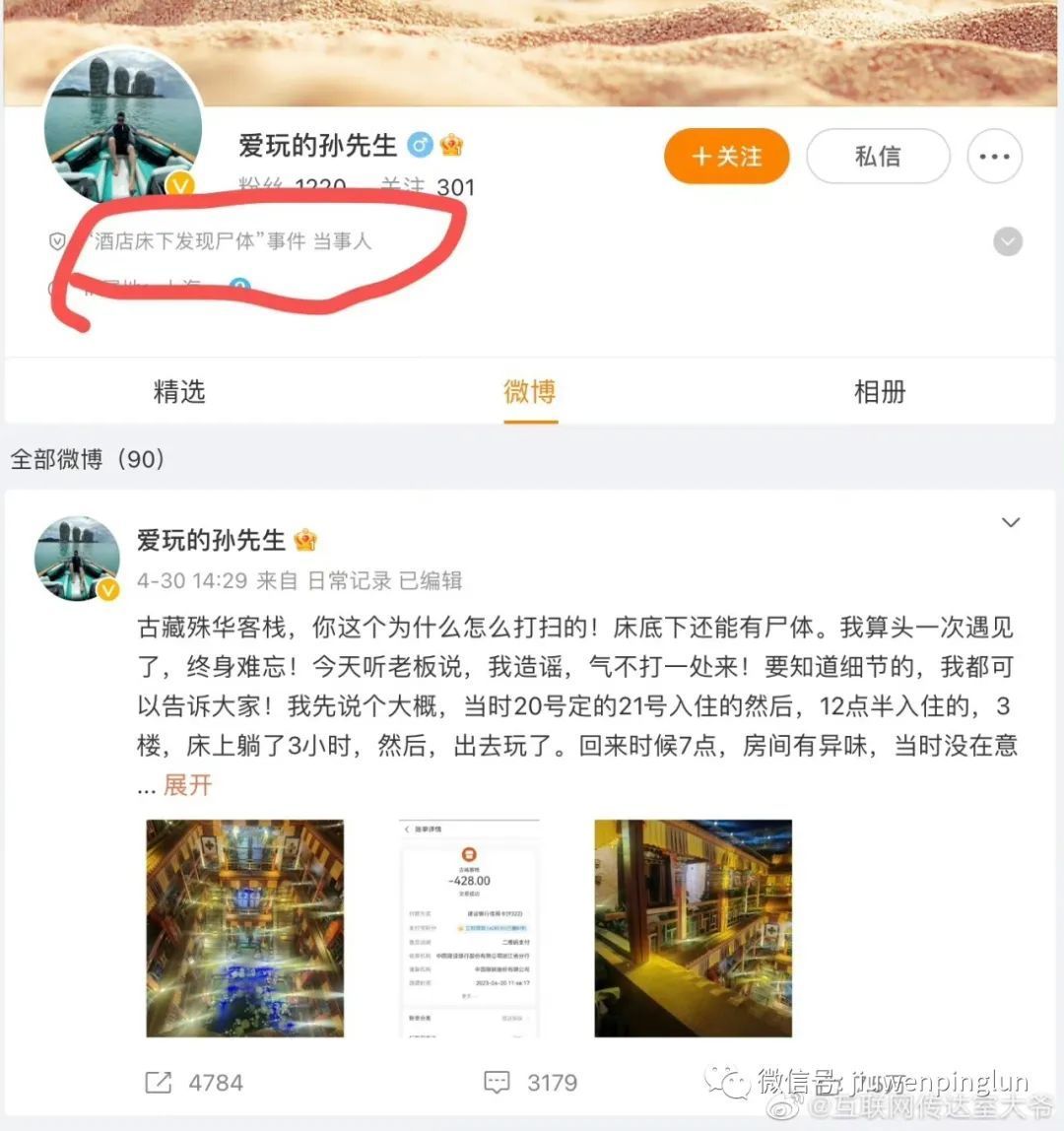 五一前发生在拉萨的最惊悚谋杀案,警方追凶、店家推诿、受害人家属声讨无良店家等情节贯穿五一假期。发现尸体的游客最终在微博认证身份,“酒店床下发现尸体事件 当事人”,这个身份标签也相当惊悚……