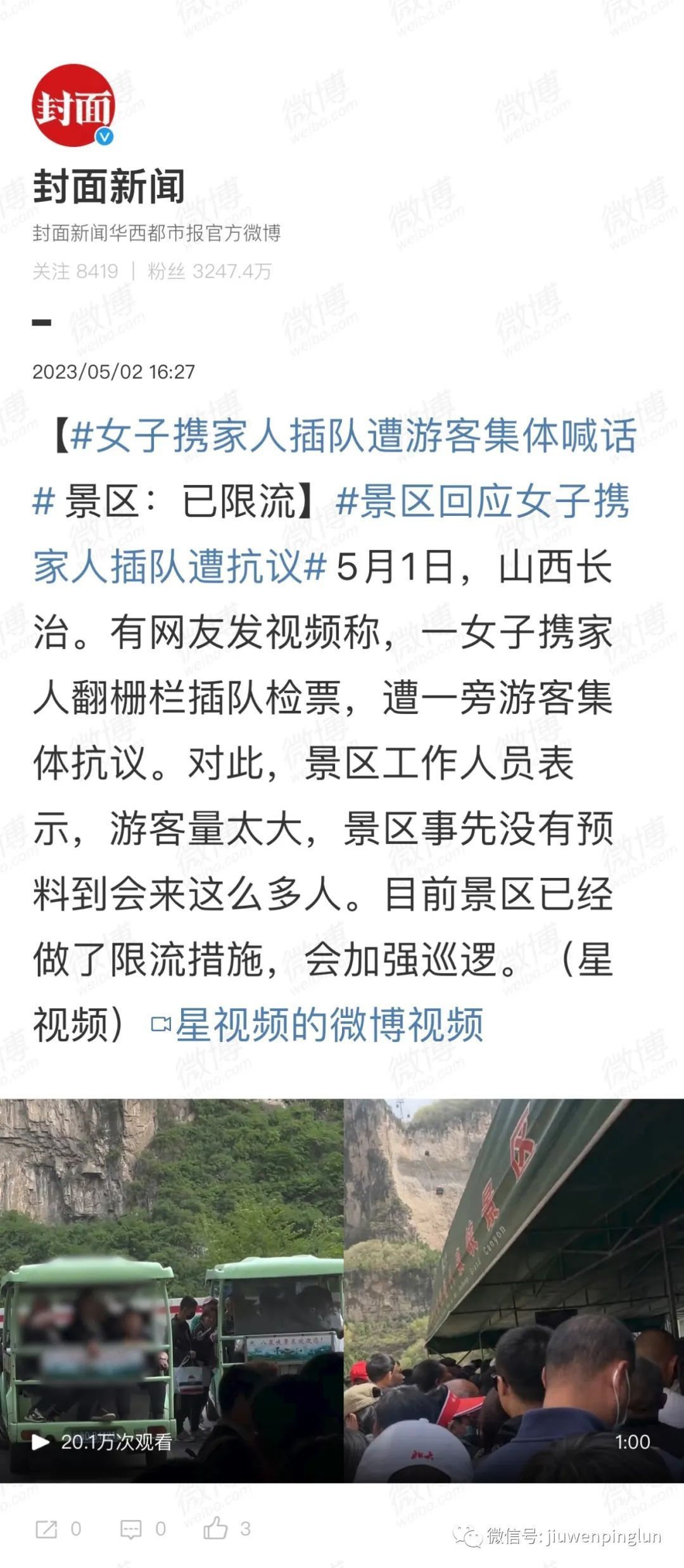 当事人澄清了,拍摄于4月27日,五一前夕。但那股浓浓的嘲讽之风,经久不散。