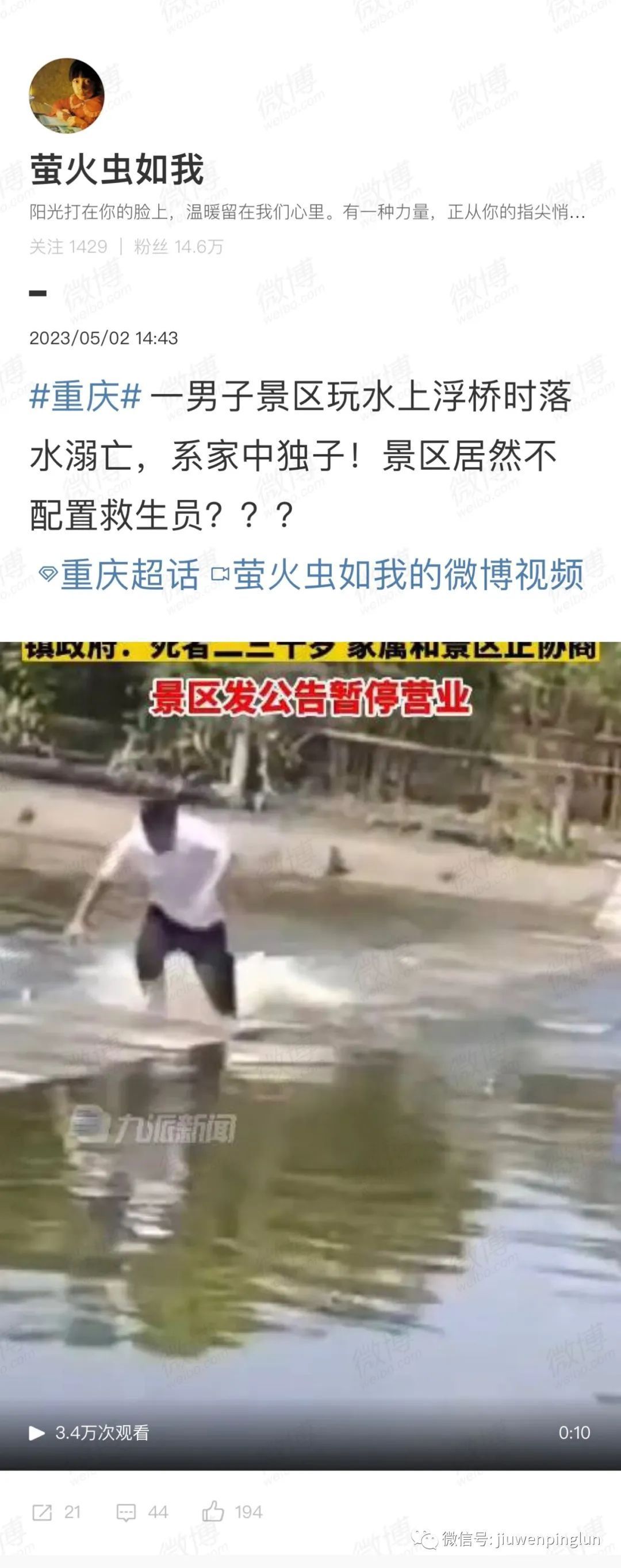 第一次出现游客身亡事件,溺死,28岁,独子,不会水性。