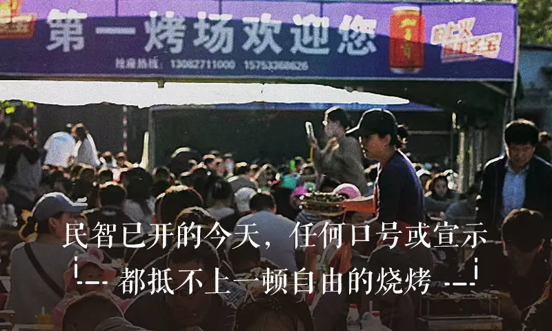 在表象上,他们是去吃一顿或几顿烧烤,而在潜意识里,他们是在实现一次放纵和表达,参与一场民主化的小试验。这本是极其卑微的目标,而在当今的中国却又是那么的珍贵。