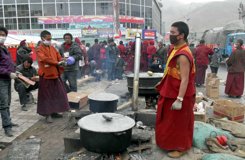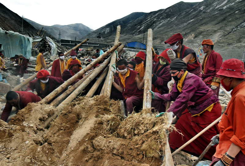 首先投入灾区的救援力量是玉树区最大的寺庙结古寺,然后是南方的康乃寺,最后则是远自四川、西藏和甘肃等地而来的庞大僧团。据报道,这些僧侣不只自己的组织良好,还能协助官兵稳定民众秩序。