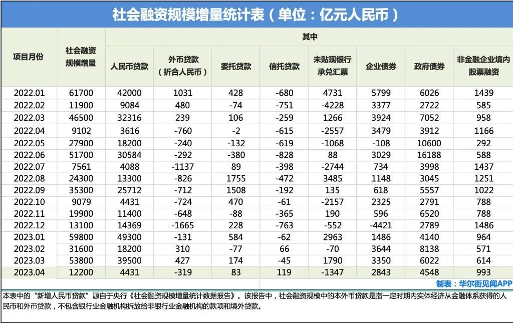 4月份,社会融资规模增量1.22万亿元,远低于预期的2万亿,更远低于3月份的5.38万亿增量。