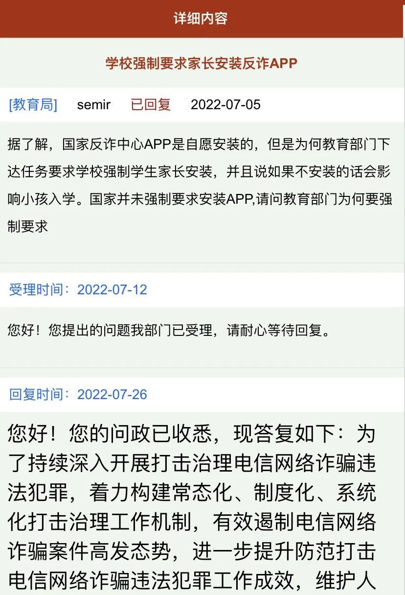 全民反诈,上面下了指标要大家安装反诈APP怎么办?也让中小学老师们去推,家长必须安装、截图、上传。还有的老师会“恳请”家长配合帮忙再找三个人下载安装,你就说这个忙你帮还是不帮吧?