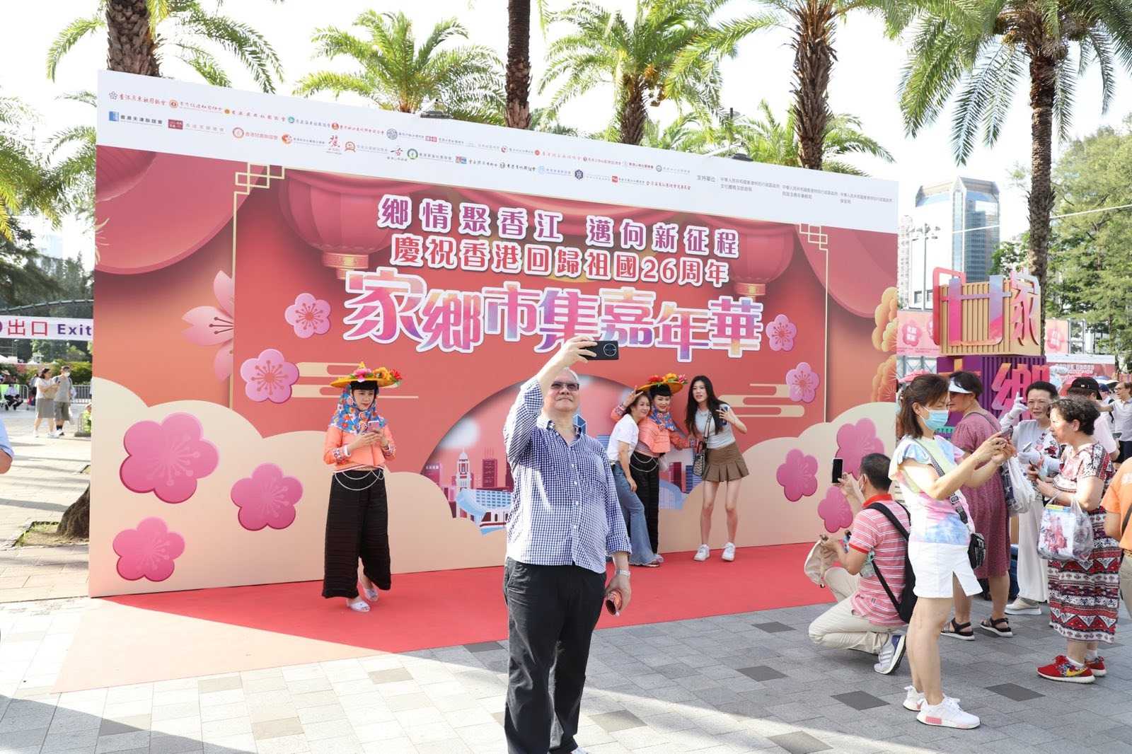与过去两年封锁园区不同,今年六四的维园,被由政府间接支持的26个省级同乡会占据,联合举办“家乡市集嘉年华”,以“乡情聚香江,迈向新征程”为主题,“庆祝香港回归26周年”。