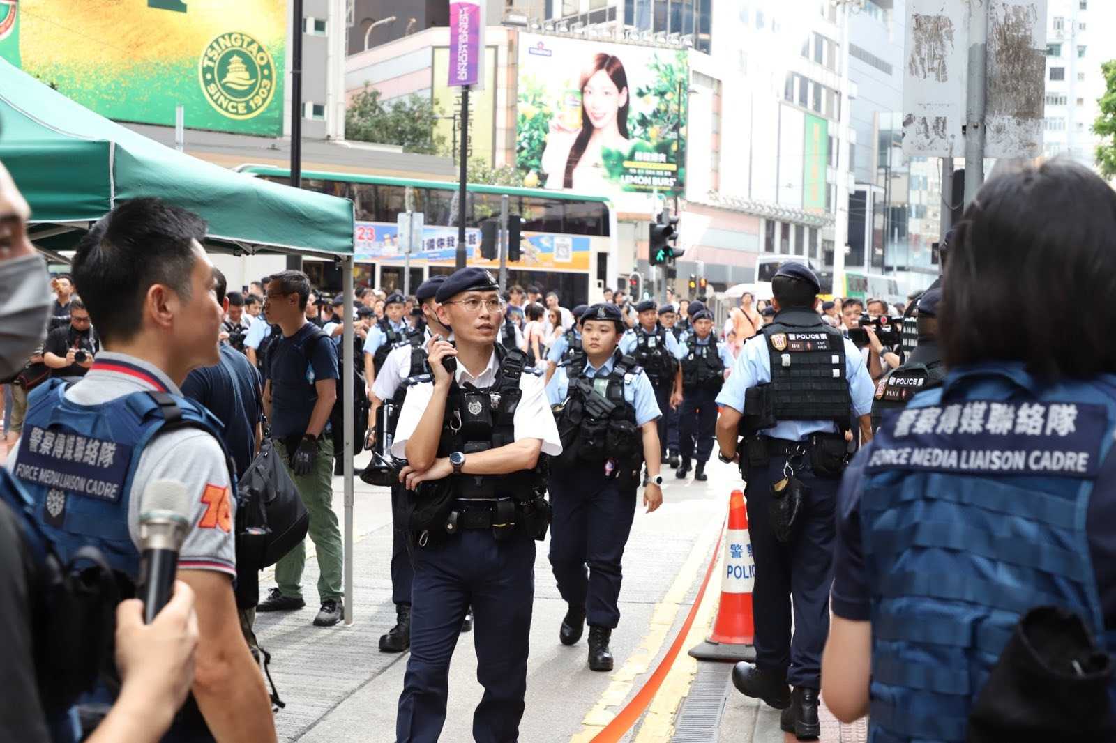 大批警察在铜锣湾中心广场布控