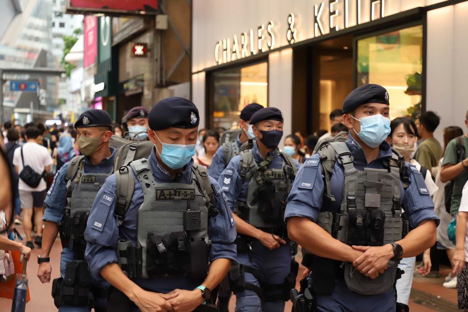 防爆警察列队巡视铜锣湾一带