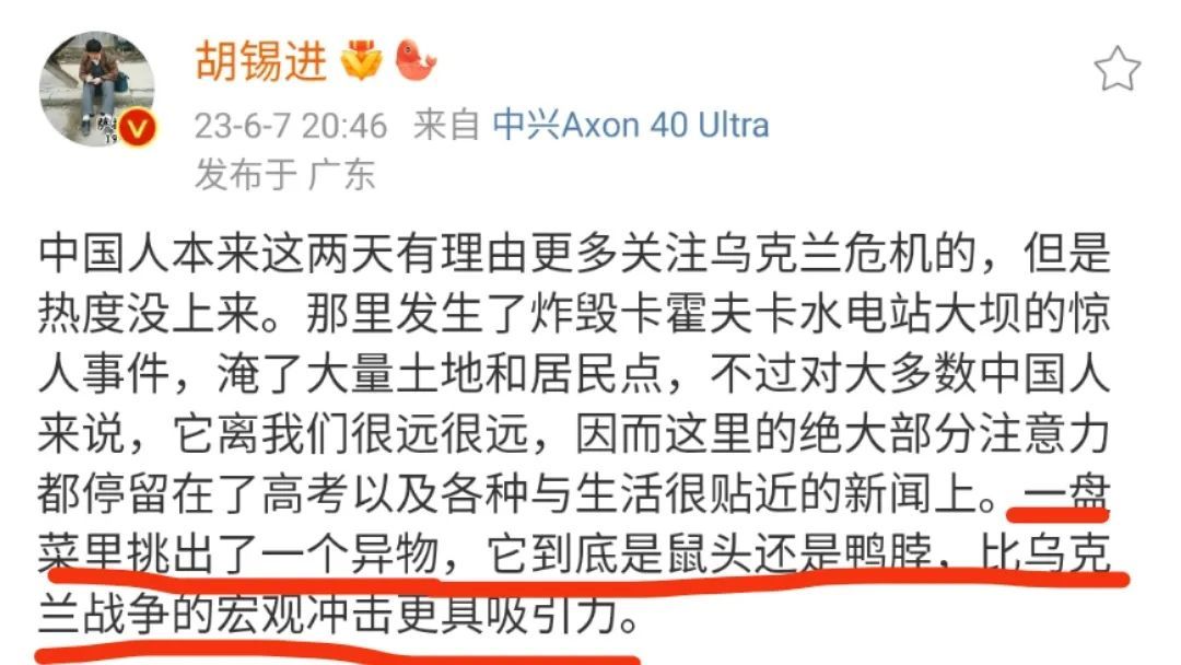 说实话,看到这篇长博之前,我本来都不想写这个事了,一来是知道大家已经被各路耗子头图片冲击的食不下咽,二是觉得这件事已经是板上钉钉没什么好写的了,结果看到胡锡进整了这么一出,直接给我闹得一激灵。
