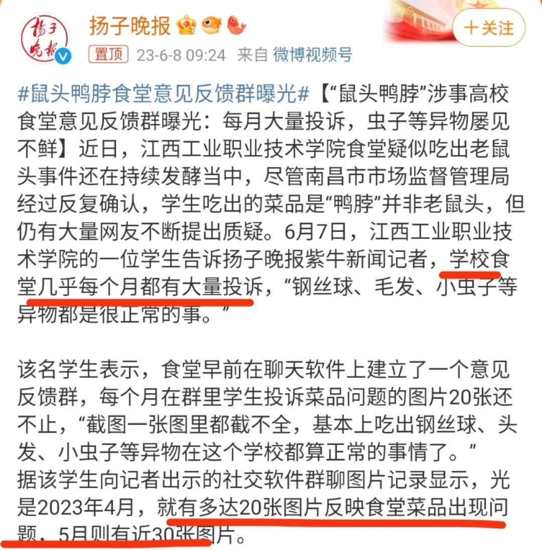 这次好不容易弄大了,好不容易有热度了,可能多少学生都盼着等着整改,让学弟学妹们有个好的吃饭环境,管管食堂天天供给野味的问题,这下好了,有官方部门的加持了,原来自己吃的不仅一直是珍馐,还是平行世界里的珍馐,还有个退休主编明里暗里跟自己说这不算事。
