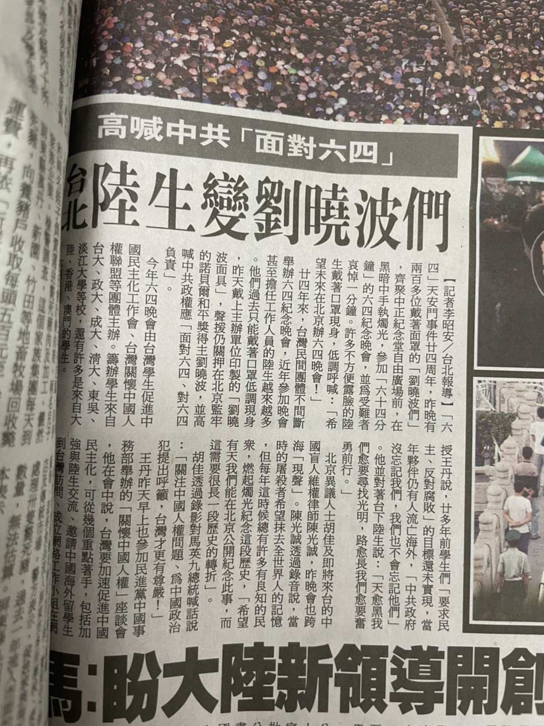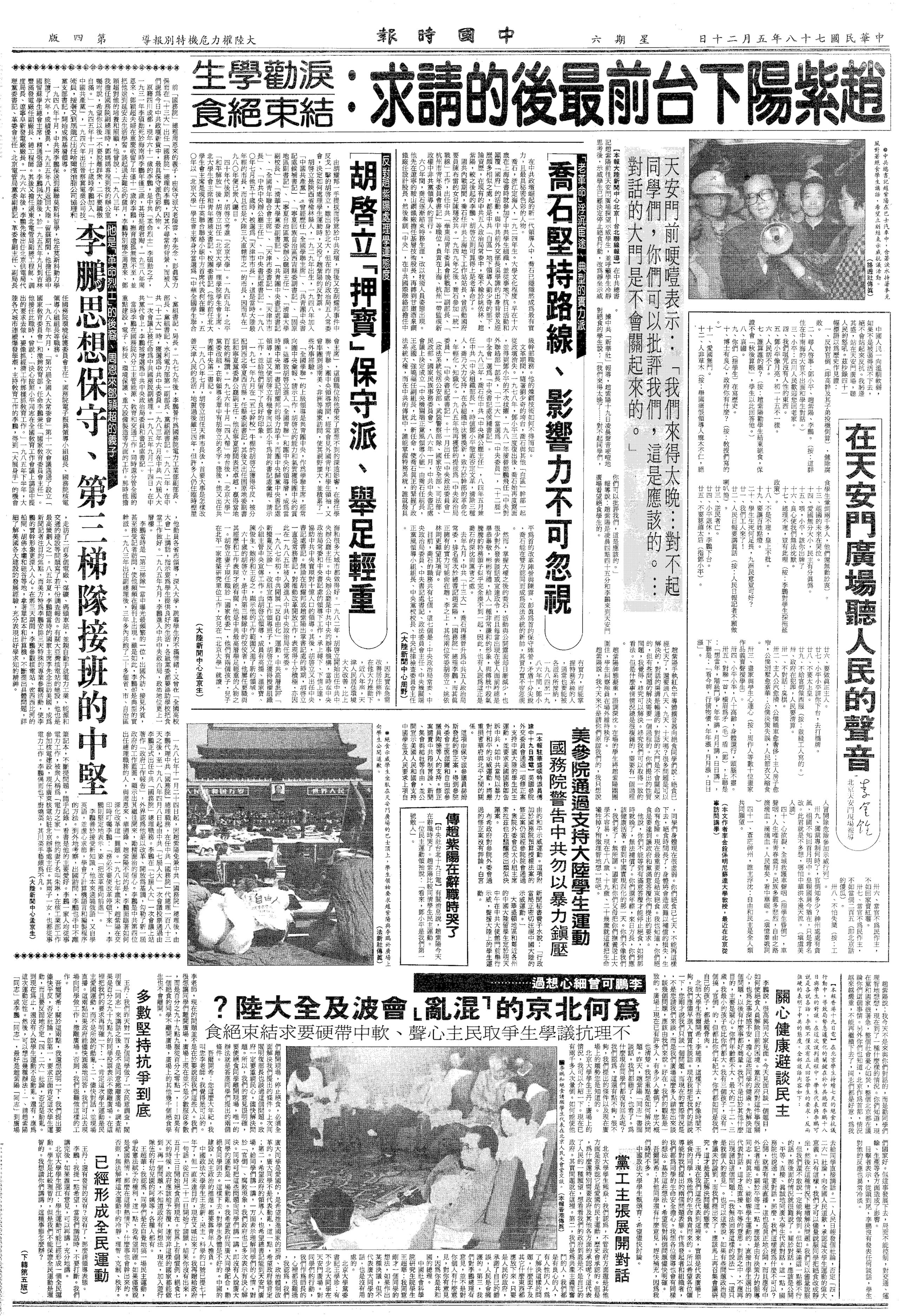 《中国时报》(1989年5月20日《大陆权力危机特别报导》)